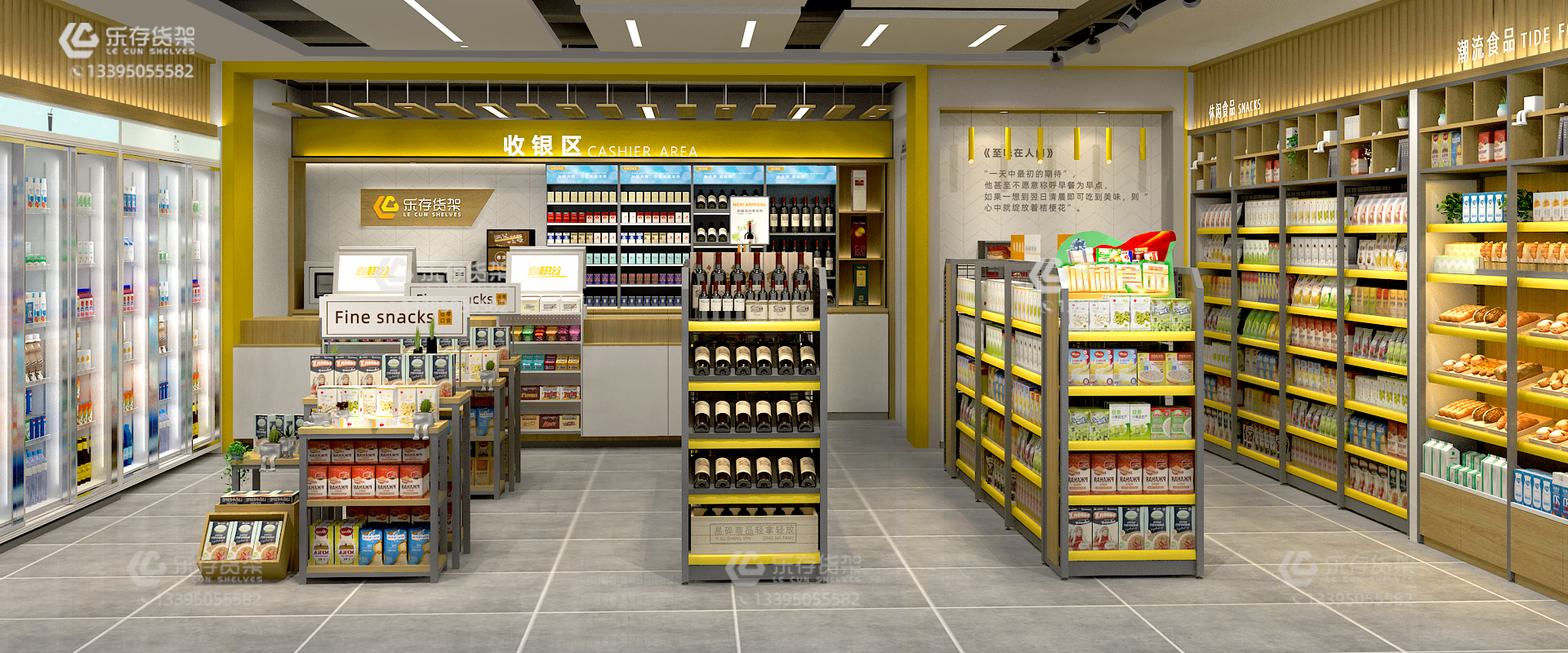 廈門便利店貨架,便利店陳列設計,便利店貨架設計,便利店貨架,便利店貨架裝修效果圖(樂存貨架)